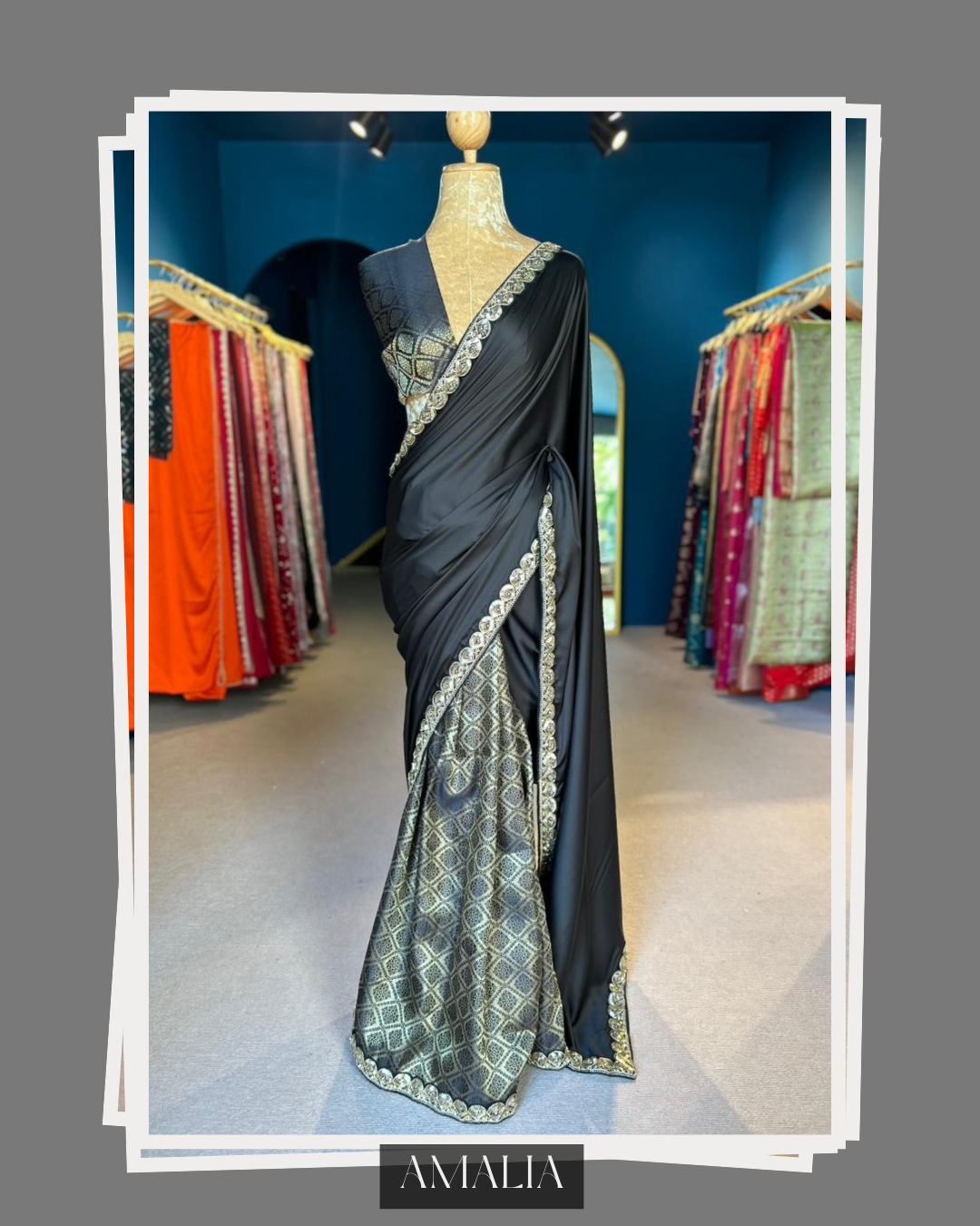 Saree: 6 yards of half and half Black Armani silk fall and Black soft brocade bottom saree designed with black sequin designer lace.