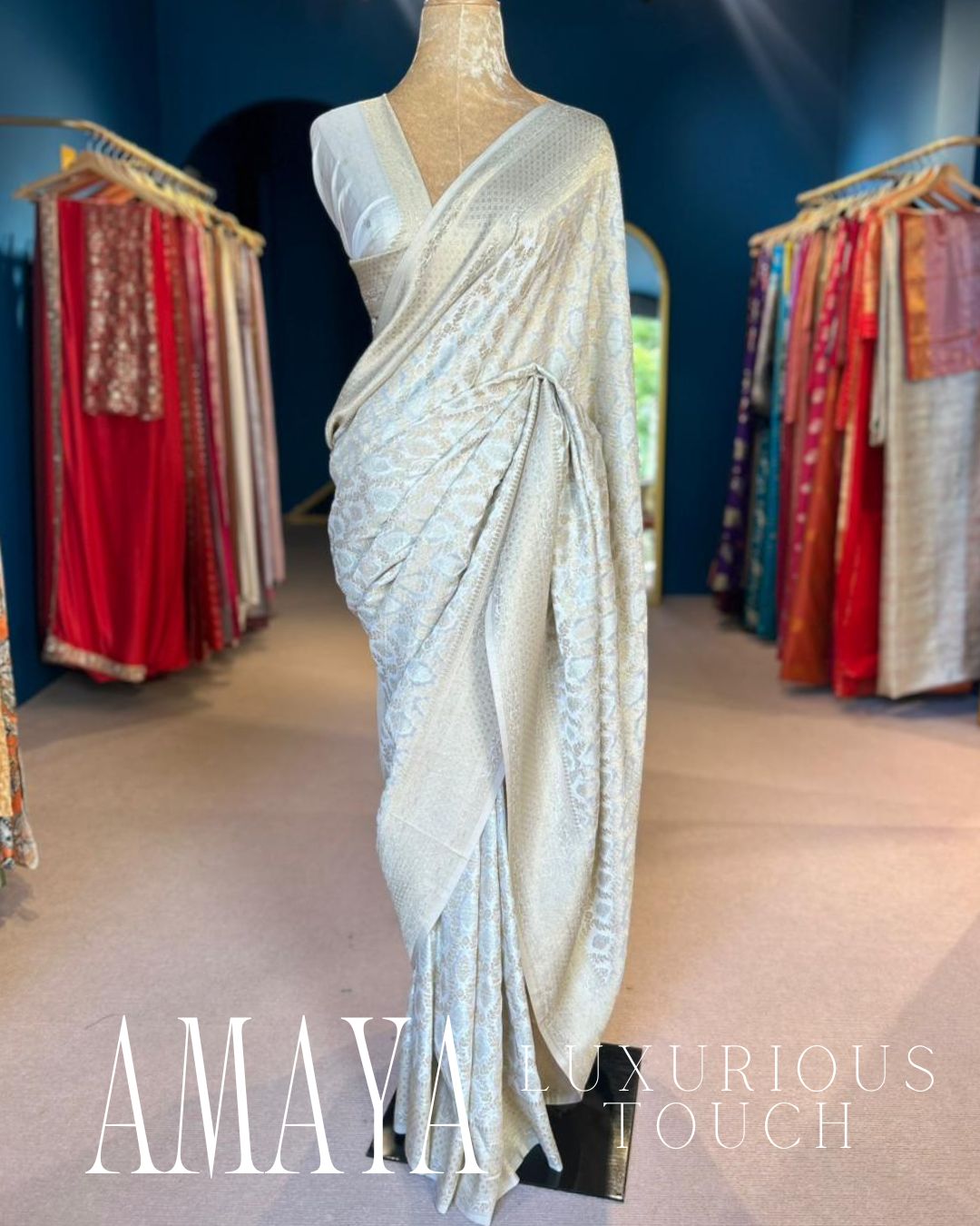 Jacket: 1 Yard of Off white Pure Crape Silk Fabric Attached to the Saree