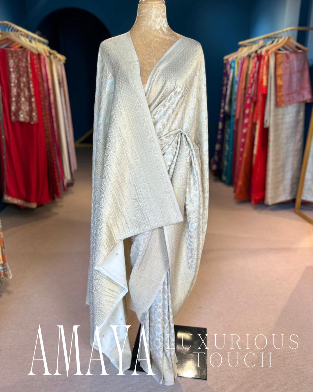 Jacket: 1 Yard of Off white Pure Crape Silk Fabric Attached to the Saree