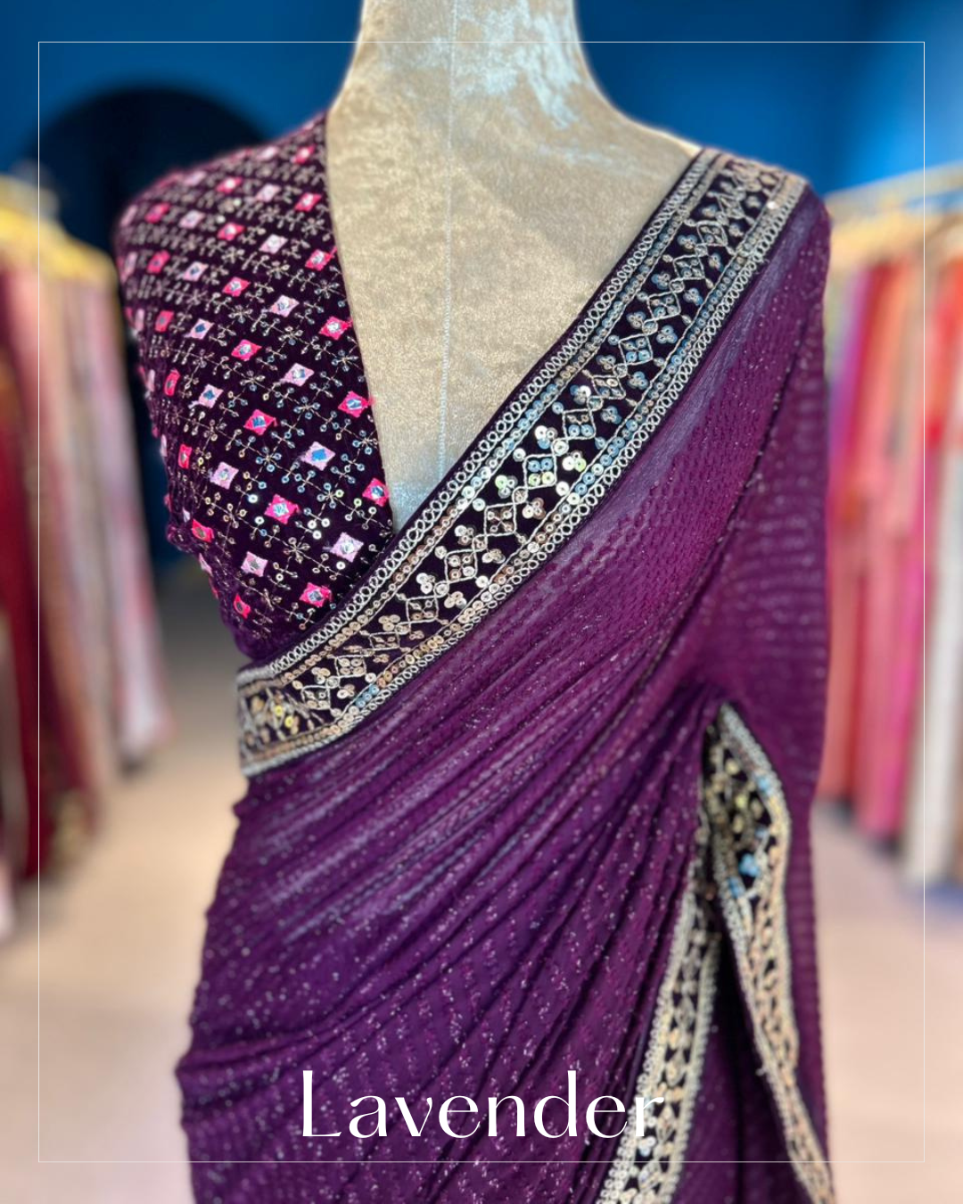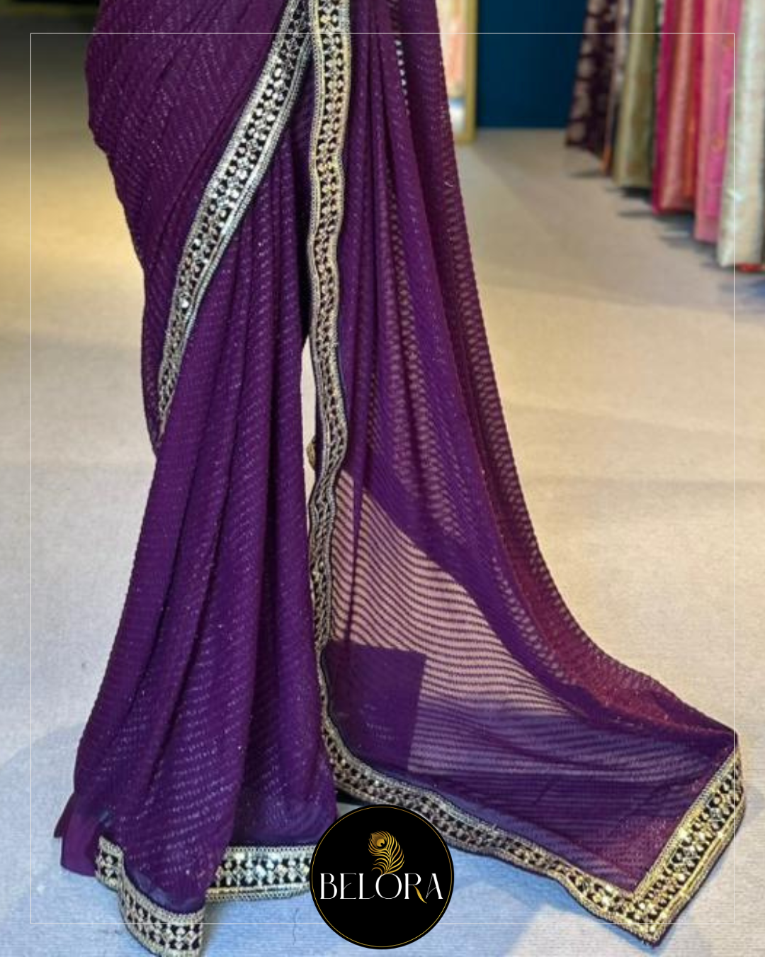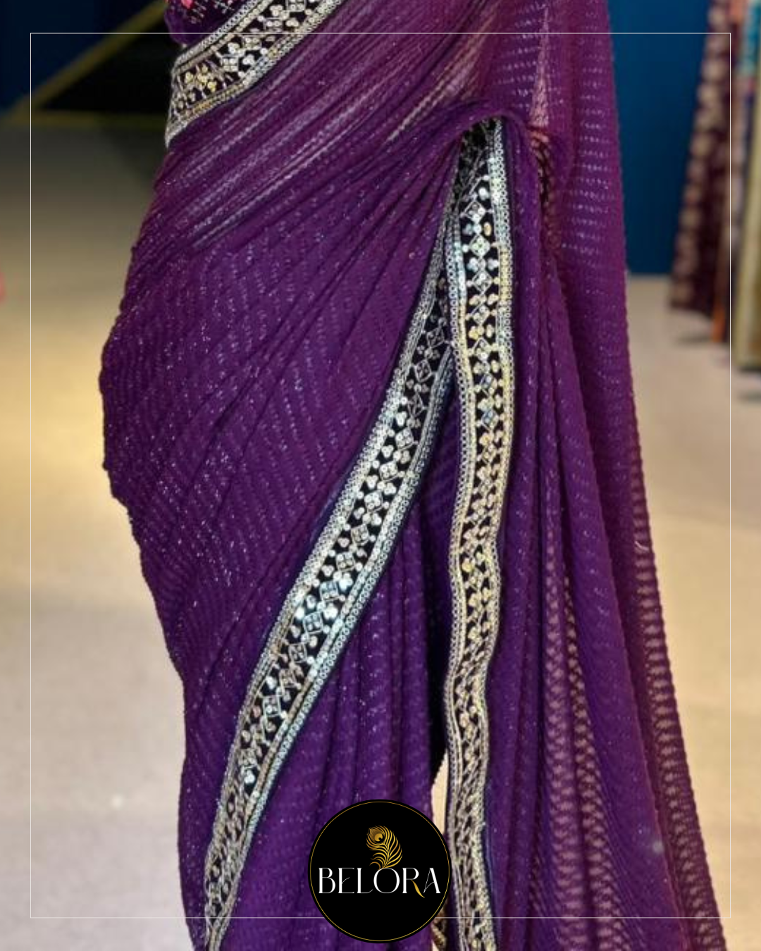 Saree: 6 yards of lace saree in Purple colour and designed with purple velvet designer lace.