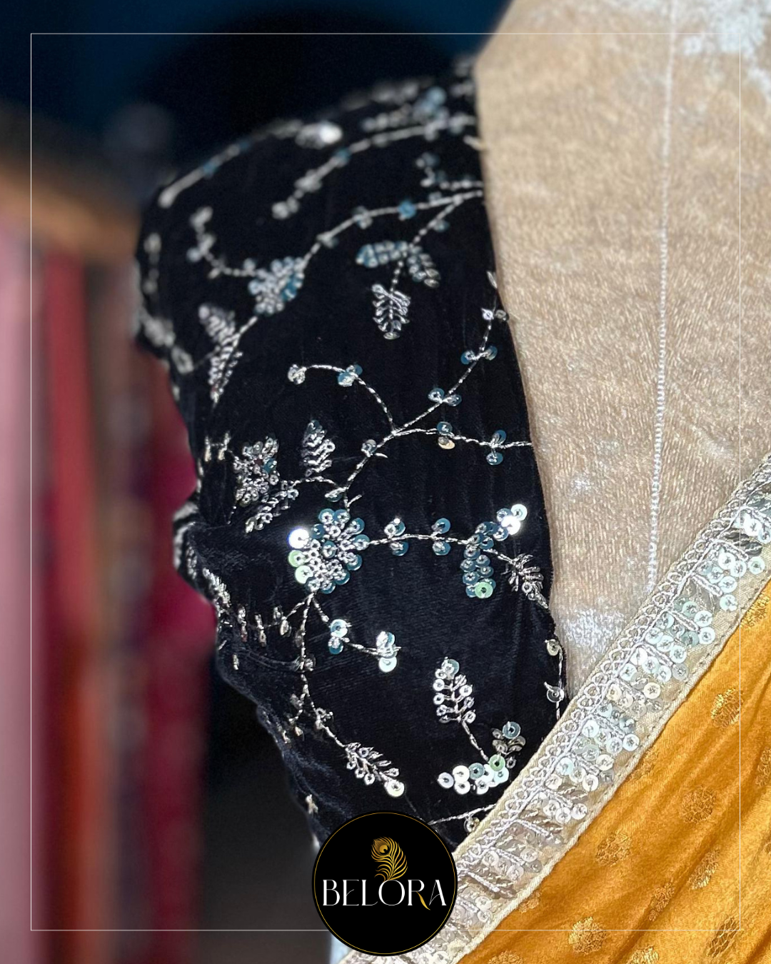 Jacket: 1 Yard of Soft Velvet Fabric in Black with Heavy Sequin work in Gold