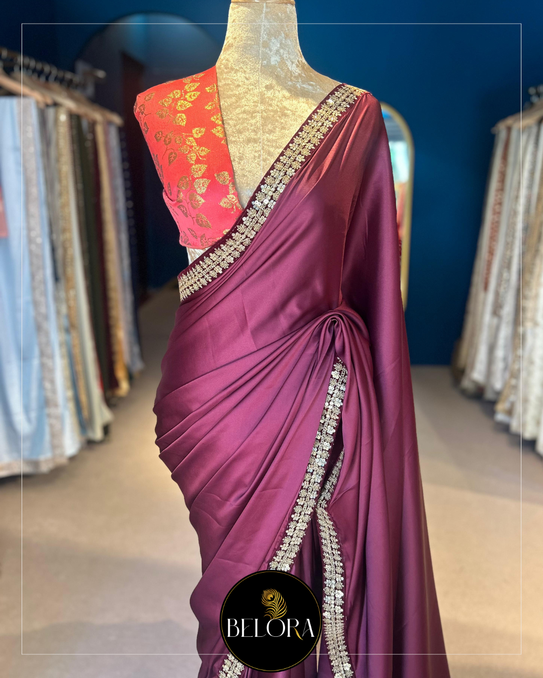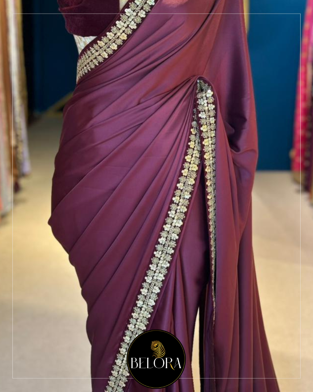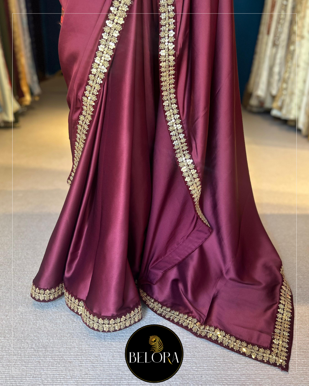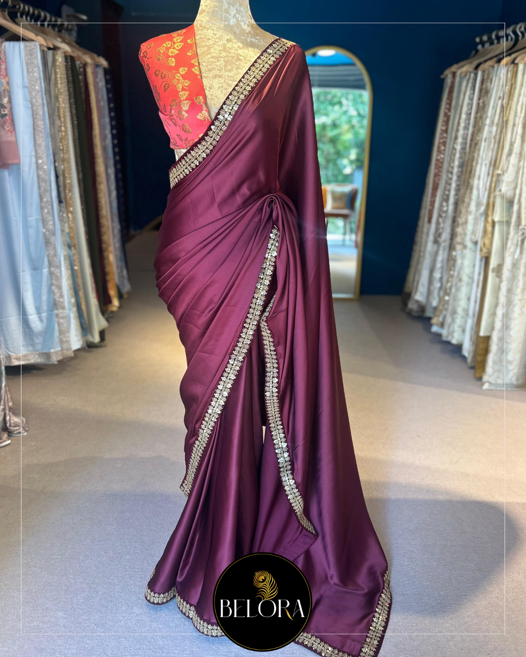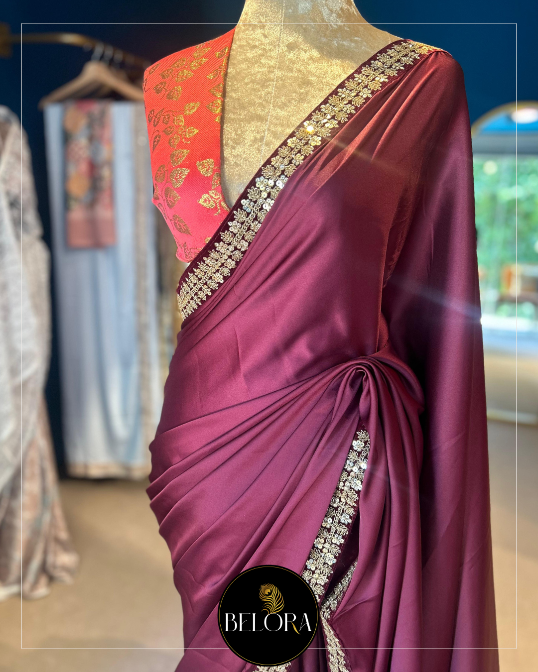 Saree: 6 yards of Armani silk saree in Maroon colour designed with Maroon designer lace.
