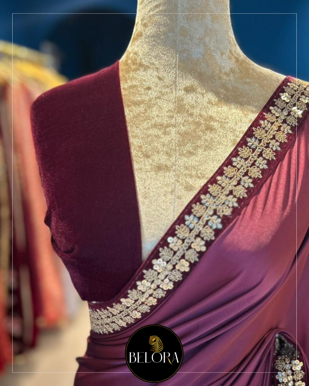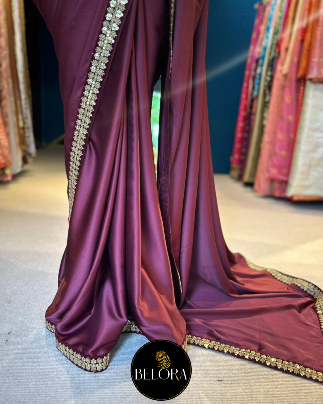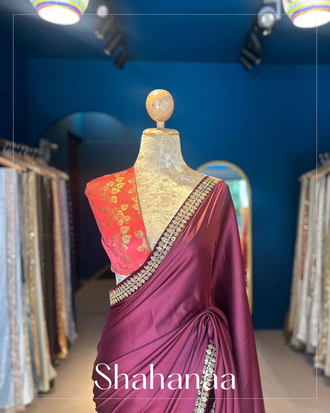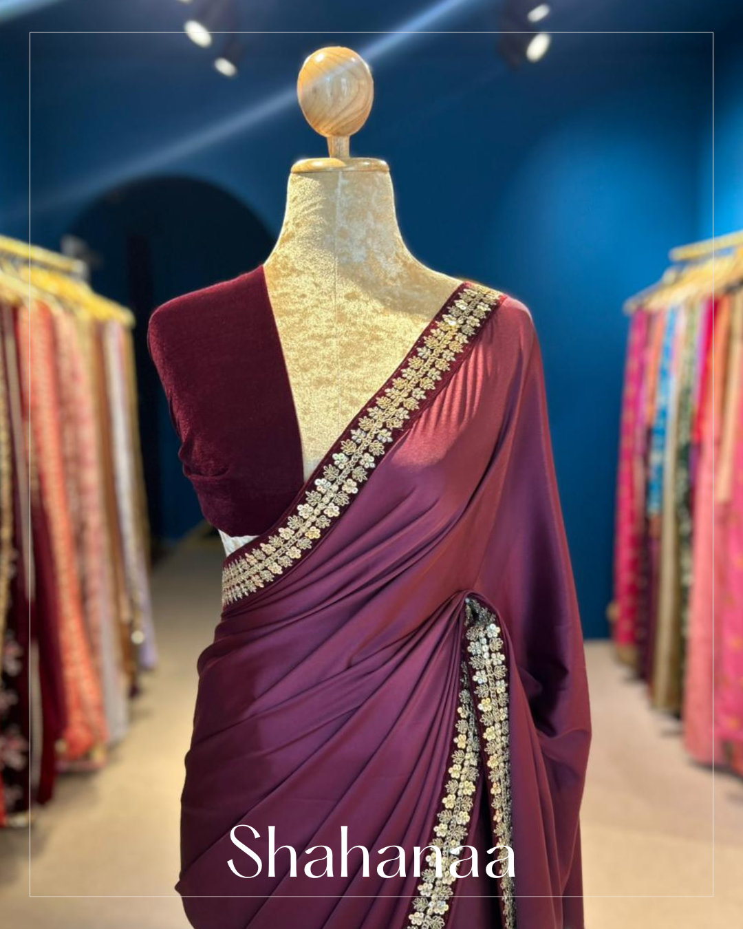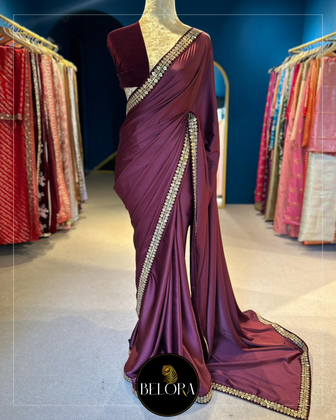 Saree: 6 yards of Armani silk saree in Maroon colour designed with Maroon designer lace.