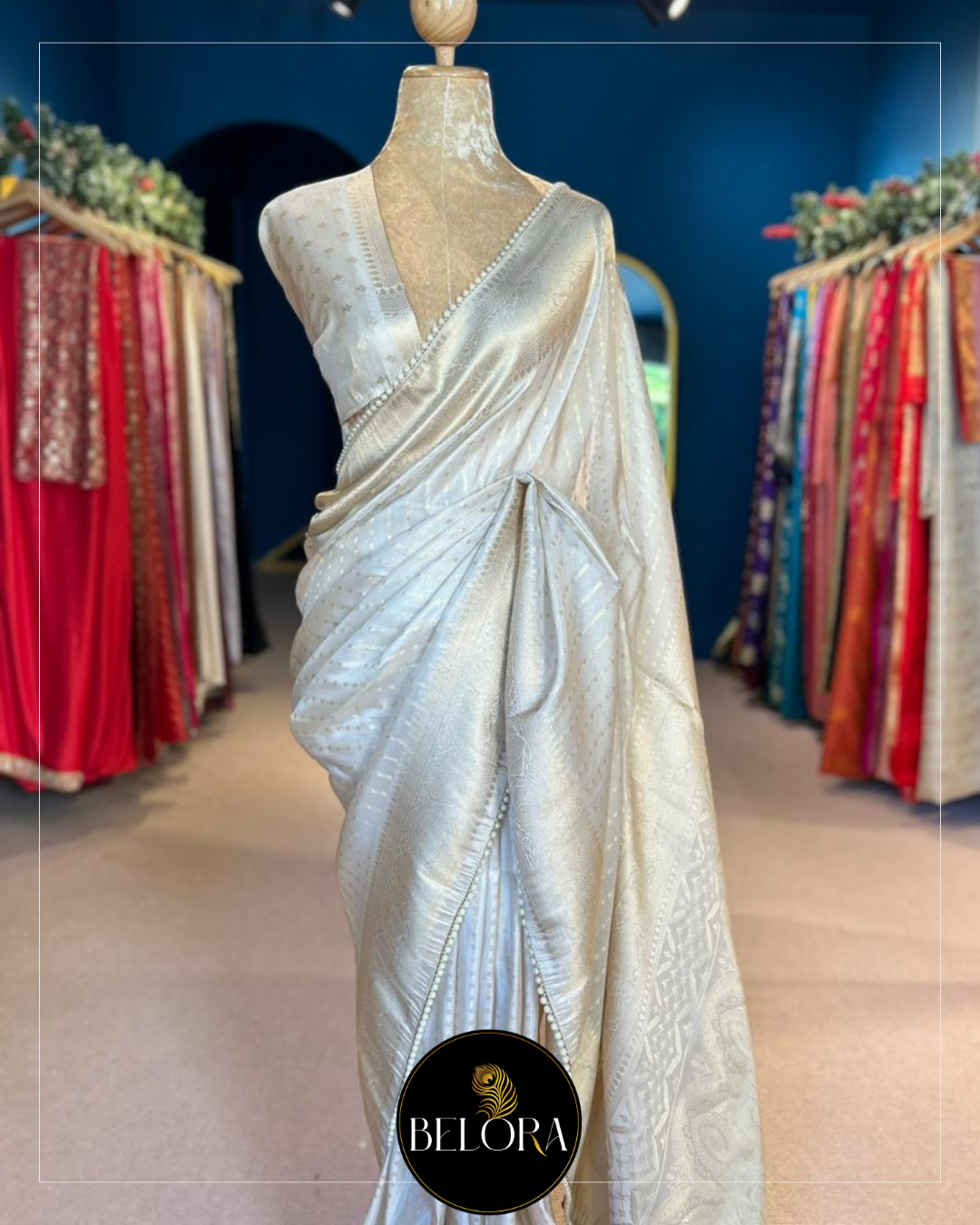 Colour Disclaimer: Please note that the actual product color may vary slightly due to lighting conditions, photography angles, and screen resolutions. We strive to represent the saree as accurately as possible, but slight variations may occur.