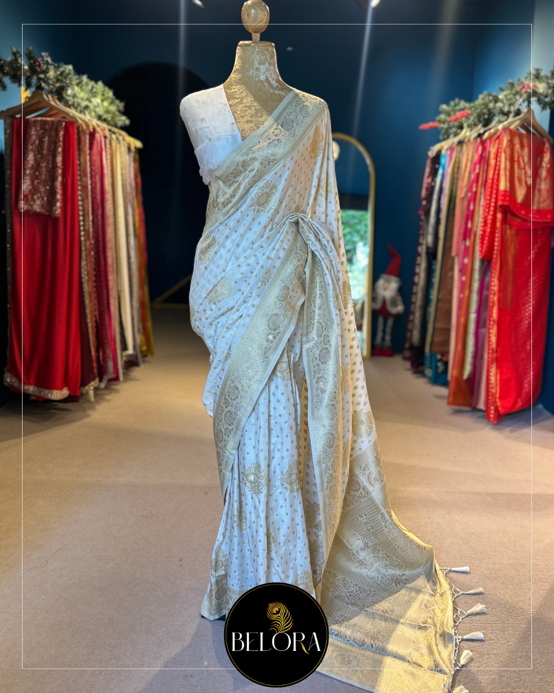 Colour Disclaimer: Please note that the actual product color may vary slightly due to lighting conditions, photography angles, and screen resolutions. We strive to represent the saree as accurately as possible, but slight variations may occur.